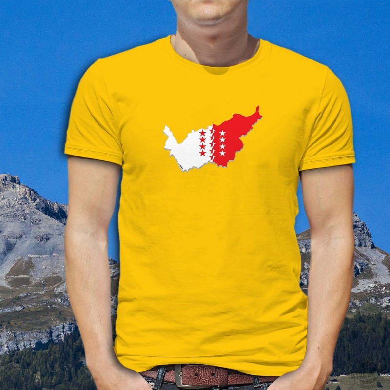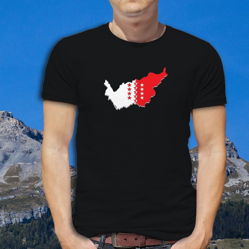 Herren-T-Shirt aus 100% Baumwolle, illustriert von den Walliser Kantonsgrenzen in den Farben von ★ Wallis ★ in 3D