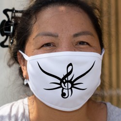 Double-layer protective tissu mask washable, illustrated with a treble clef stylized as a tribal tattoo representing the rooting of music within each of us