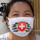 Double layer fabric mask washable at 60 ° C, with the Swiss crest, a white cross under a red background, held by claws tearing the mask