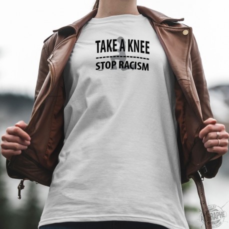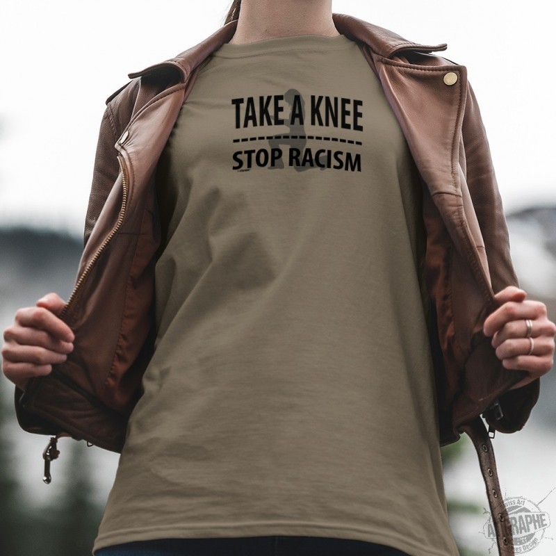 Women's T-shirt with the slogan ✪ TAKE A KNEE ✪ STOP RACISM ✪. A donation of 4 CHF to the GRA, Foundation against racism and anti-Semitism will be made for each T-shirt sold, in memory of George Floyd and all the other victims