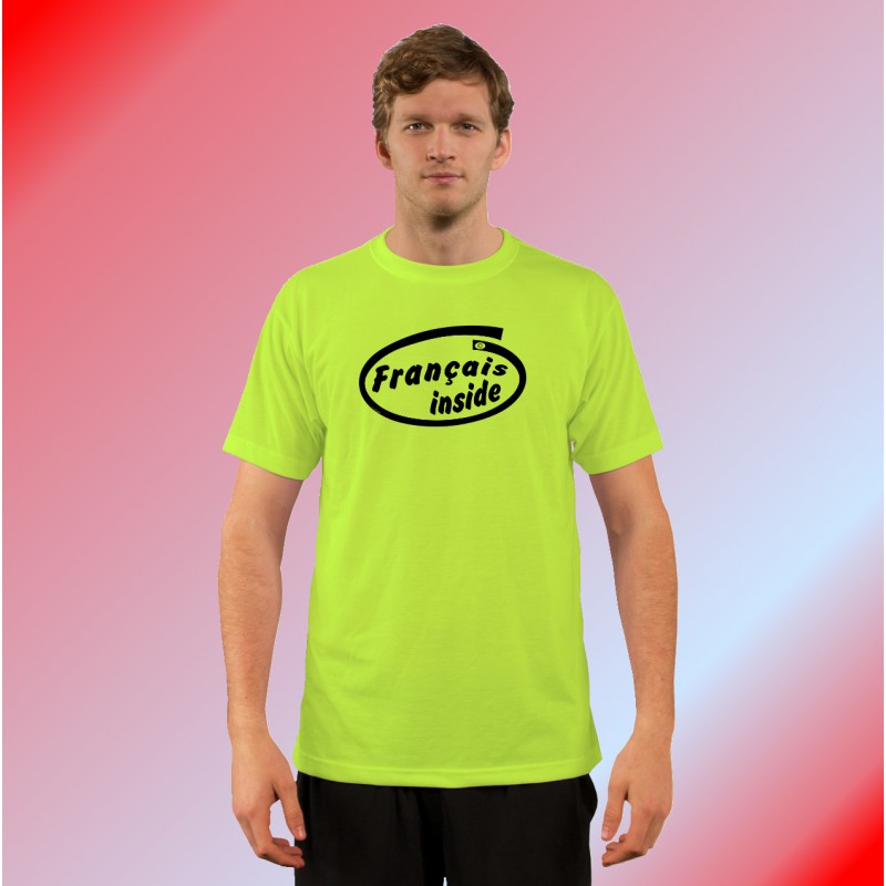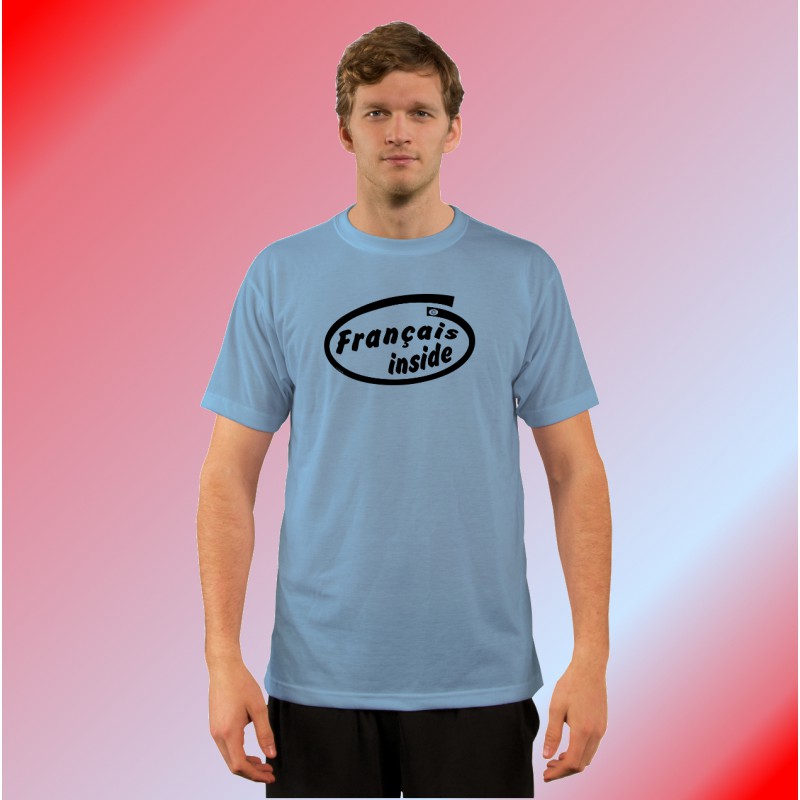 Men's T-shirt illustrated with the quote "Français inside", a misuse of the slogan of Intel to designate that the wearer of this T-shirt is of French nationality