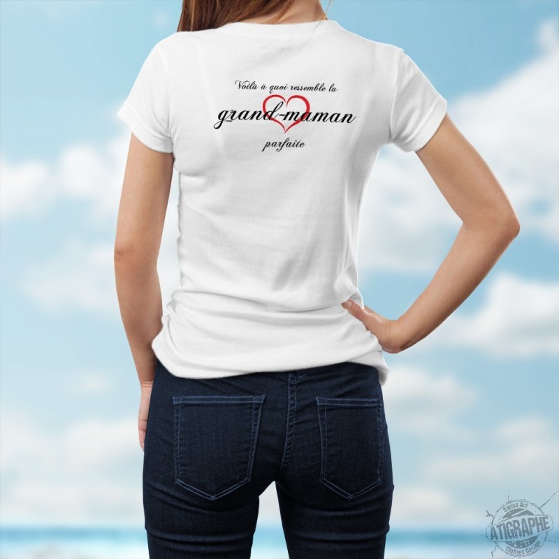 Women's fashion slim T-Shirt illustrated with the quote "La grand-maman parfaite"