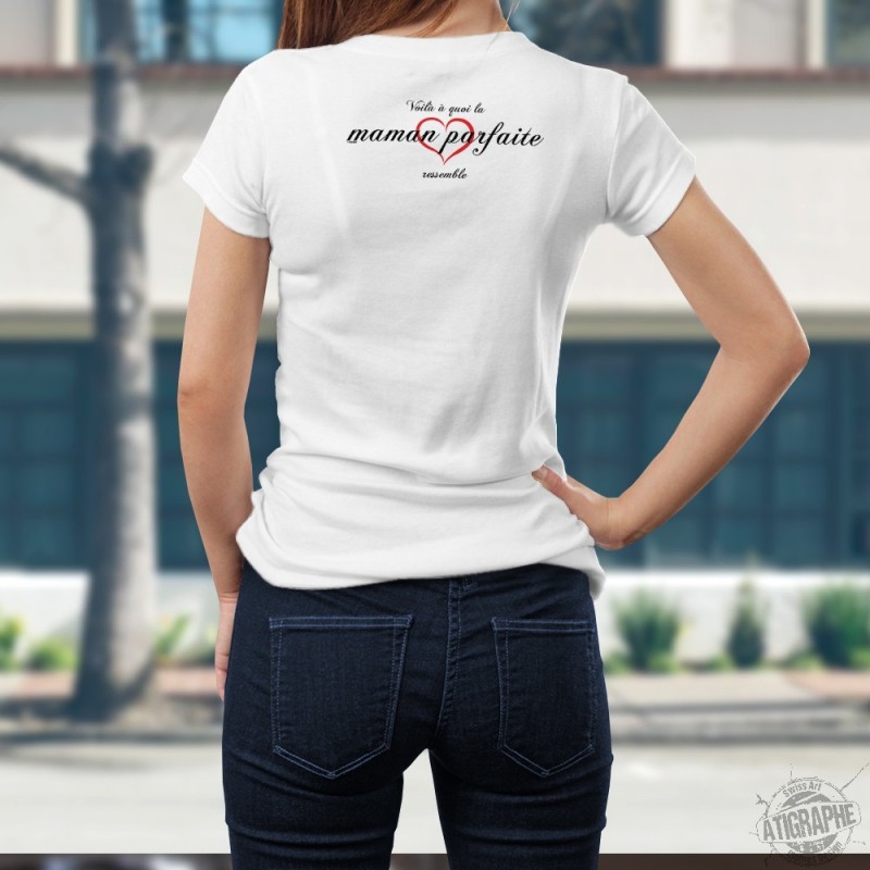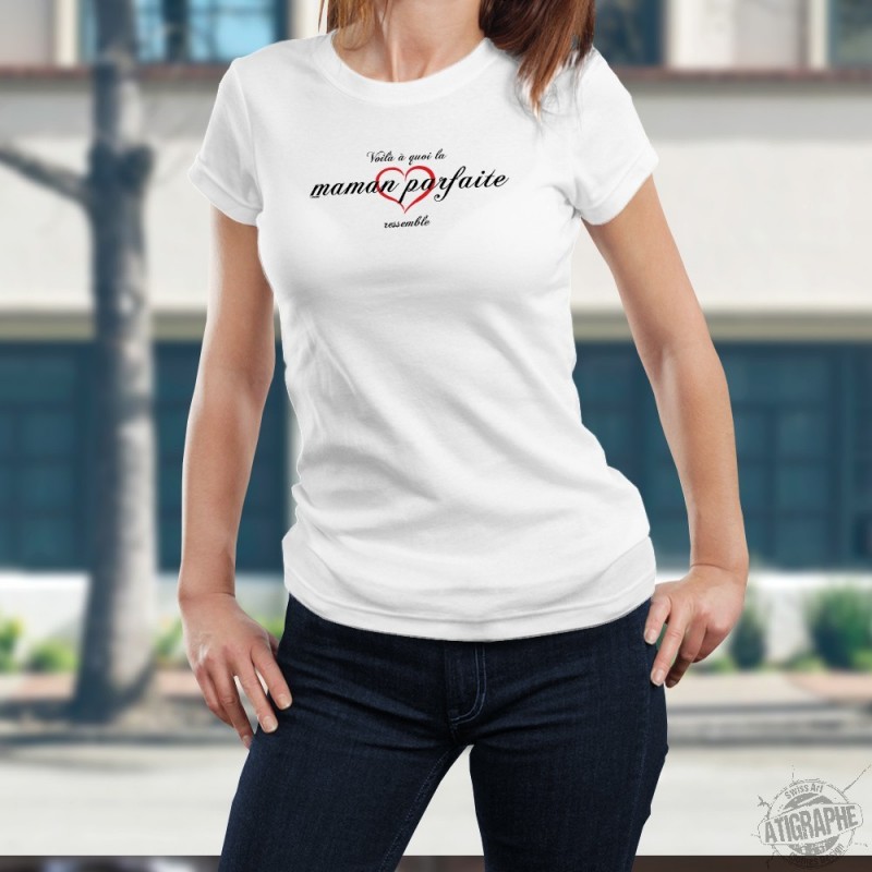 Women's fashion slim T-Shirt illustrated with the quote "La maman parfaite ❤