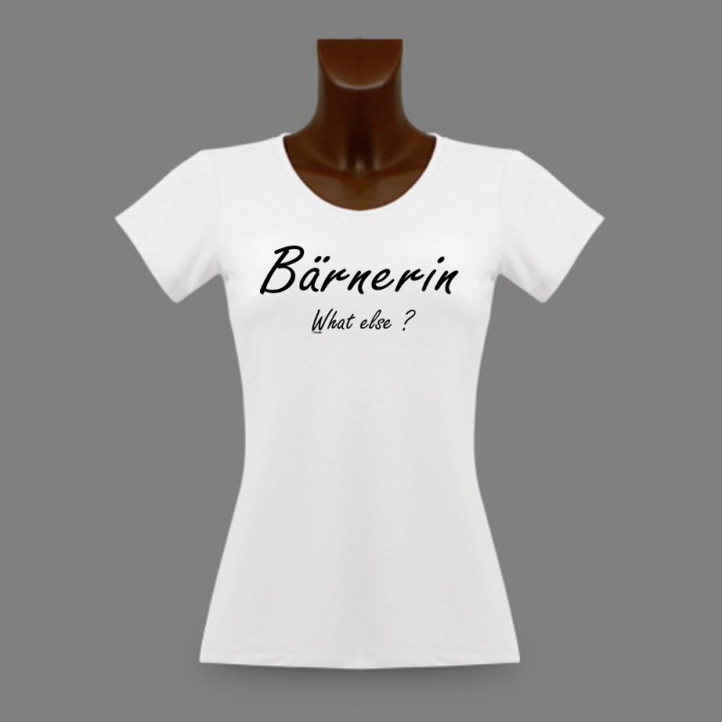 Women's fashion slim T-Shirt illustrated with the quote "Bärnerin, What else?", A digression of the slogan of George Clooney for a famous coffee brand