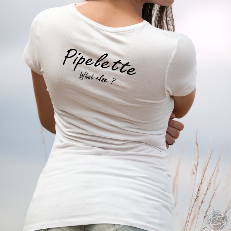 Women's fashion slim T-Shirt illustrated with the quote "Pipelette, What else?", A digression of the slogan of George Clooney for a famous coffee brand