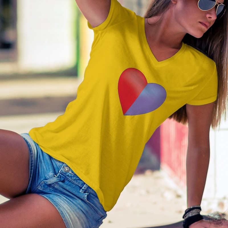Lady fashion 100% cotton t-shirt in a very feminine cut, illustrated with a ❤ heart ❤ in the colors of the flag of the canton of ✿ Ticino ✿