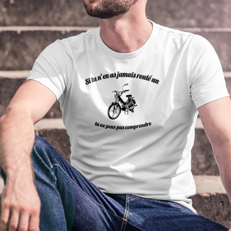 Funny T-shirt illustrated with the slogan "Si tu n'as jamais roulé un Boguet"