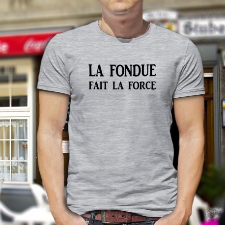 Humourous T-shirt illustrated with the quote in French " La Fondue fait la Force"