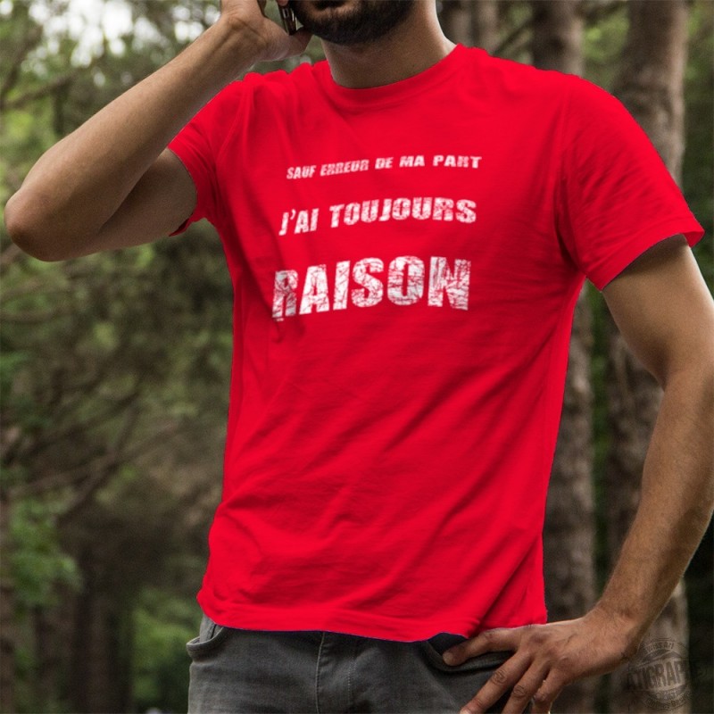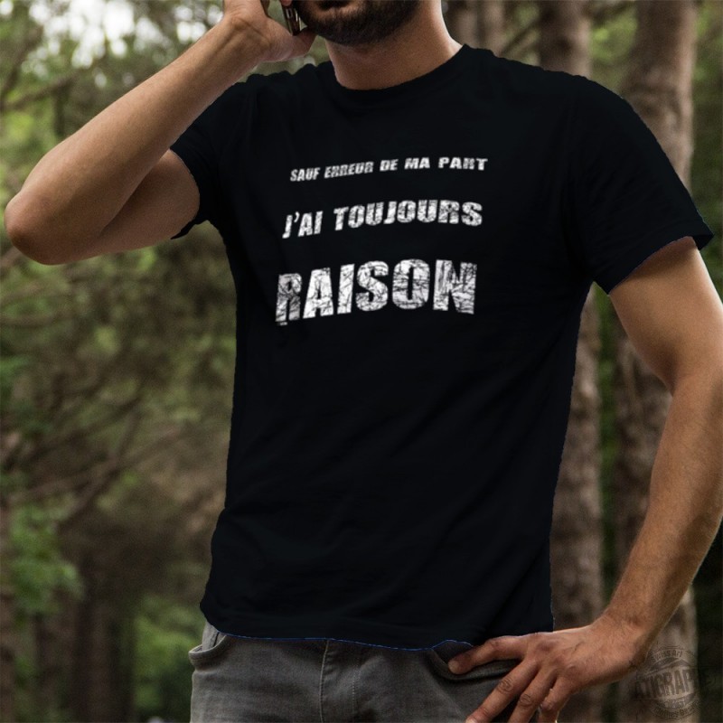 Funny 100% cotton T-shirt illustrated with the quote "J'ai toujours raison"