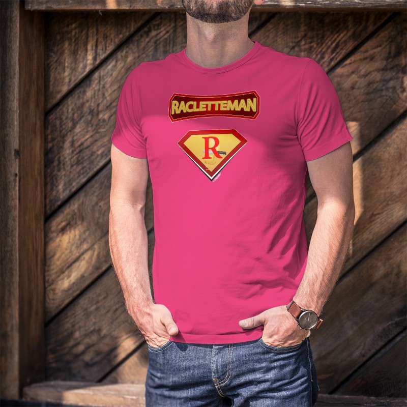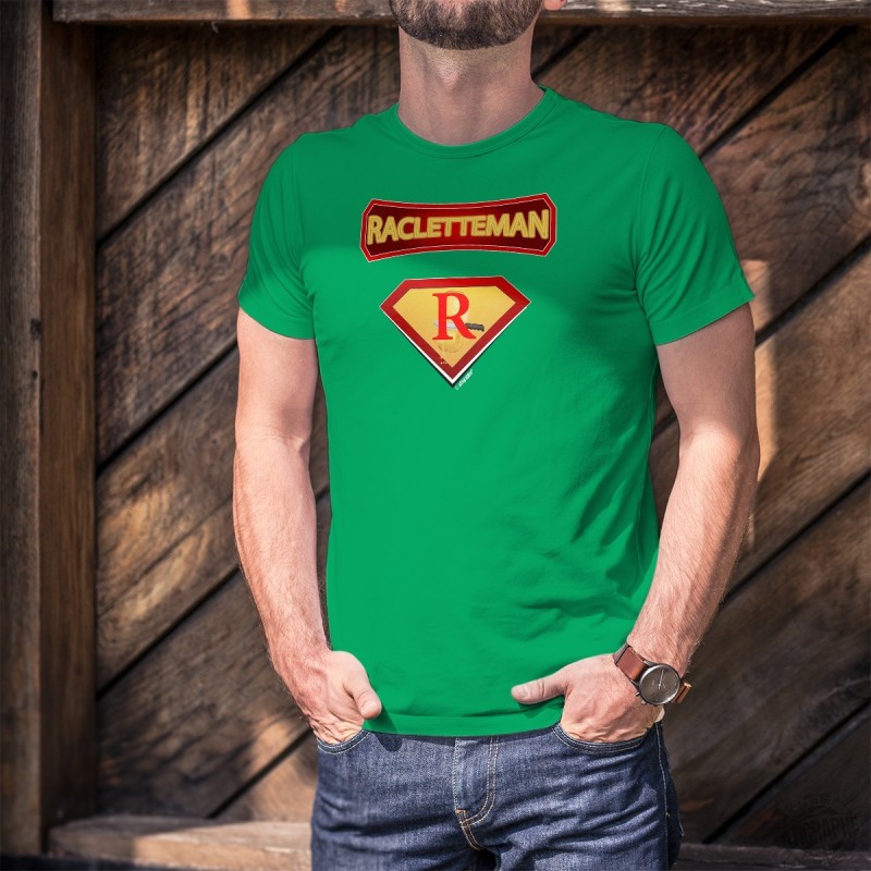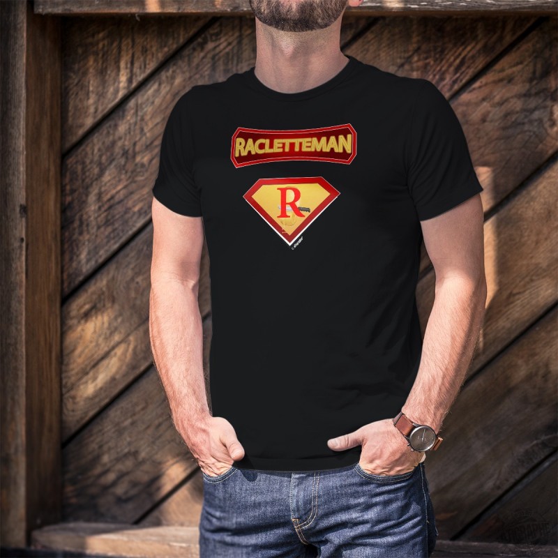 Men's Fashion cotton T-Shirt with distinctive signs inspired by ✻ super heroes comic ✻ books. You are the one who has super powers while eating the raclette