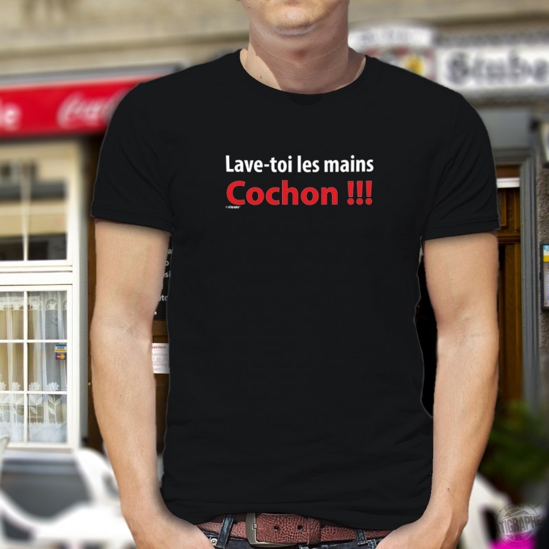 Men's Fashion T-shirt illustrated with "Aussi vite que possible ✚