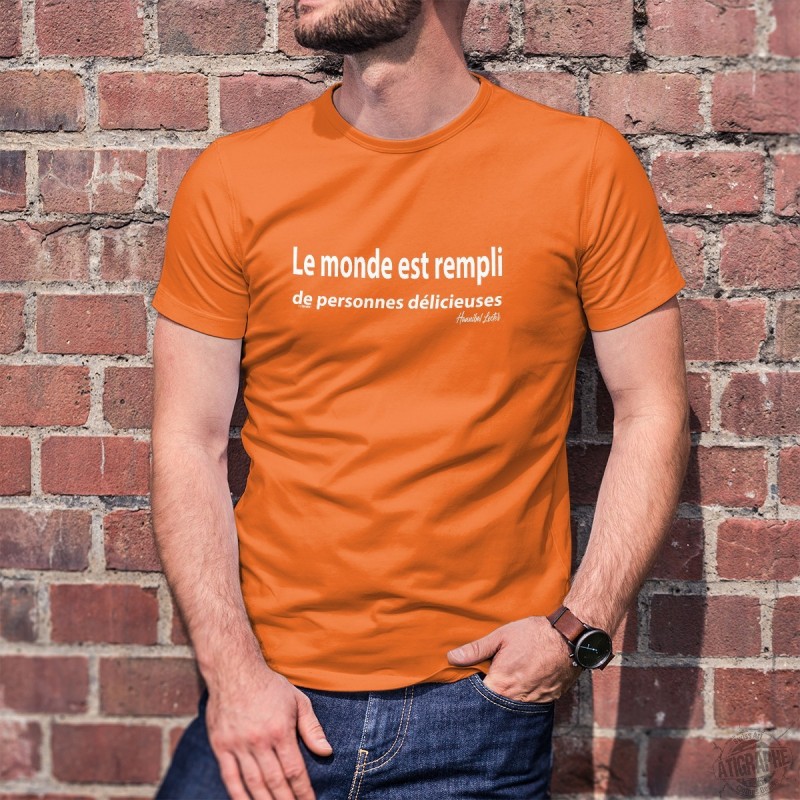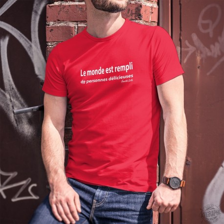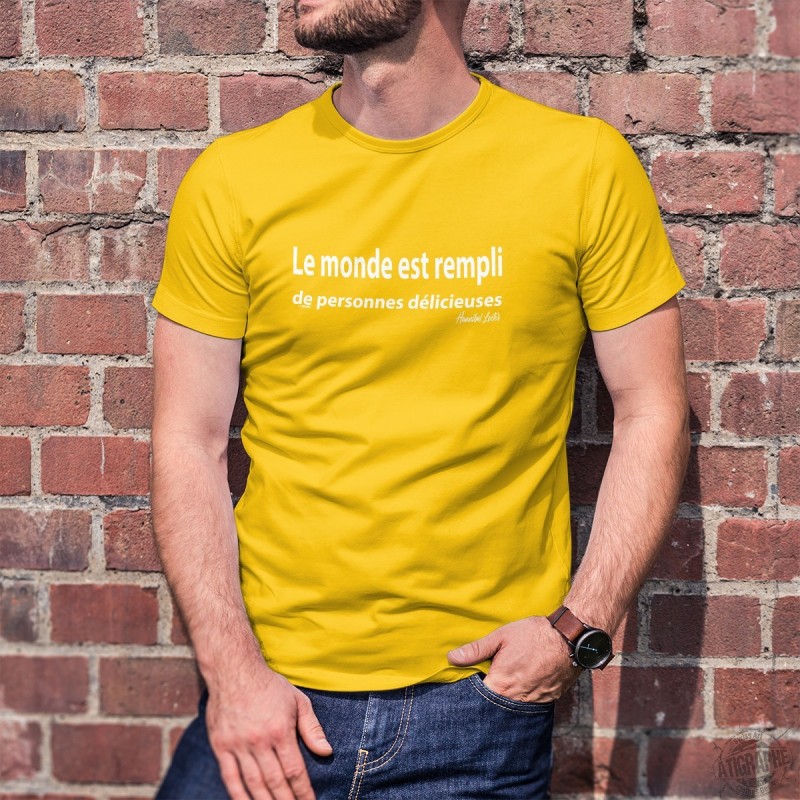 Men's Fashion cotton T-Shirt illustrated with humorous french quote, " Le monde est rempli... ✪ Hannibal Lecter ✪