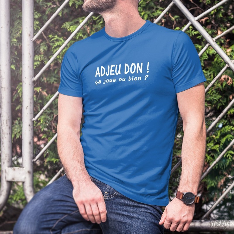 100% cotton T-shirt with the quote "Adjeu don ! ça joue ou bien ?