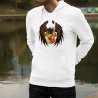 White fashion Hoodie for men, with an eagle holding a coat of arms in the colors of the city and canton of Geneva