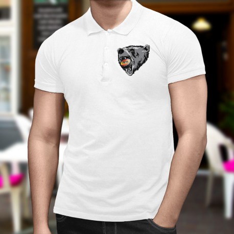 Fashion Polo for Men illustrated with a Bern Bear and Ice Hockey puck
