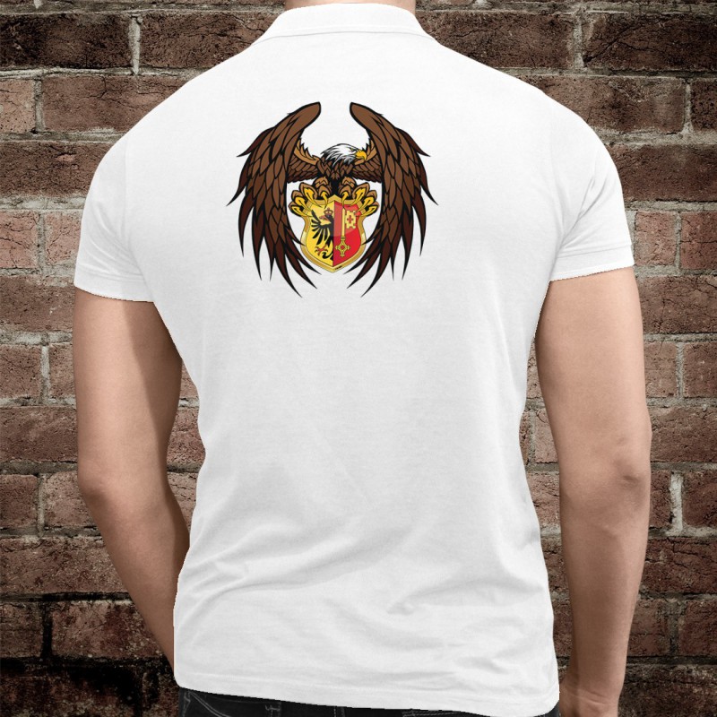 Men's Polo Shirt illustrated with an eagle holding a shield in the colors of the city and canton of Geneva