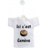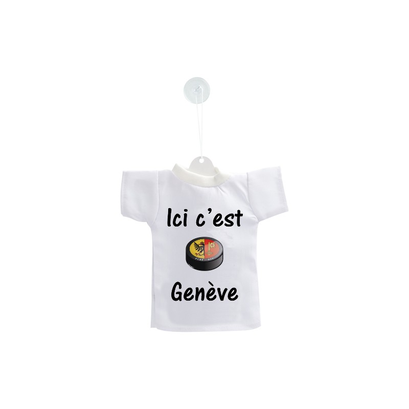 Mini t-shirt, for car decoration, with Ici c'est Genève - ice hockey puck illustrated.