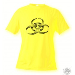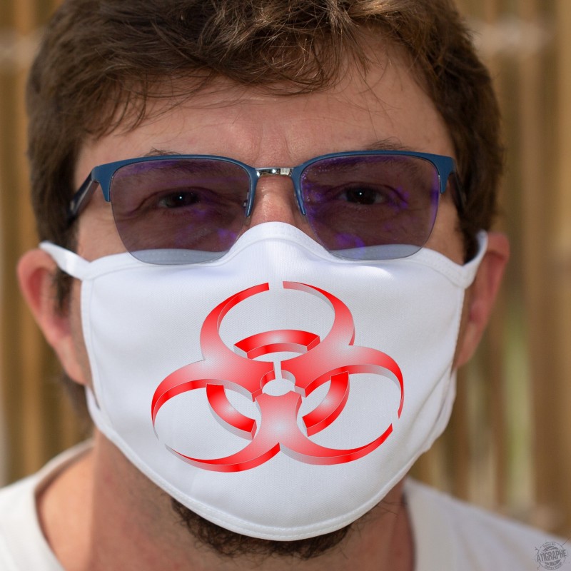 Double-layer protective tissu mask washable, illustrated with the well-known ★ Biohazard symbol ★ revisited in 3D