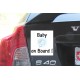 Sticker illustrated with a little baby hanging on the word Baby, boy version, white and blue background