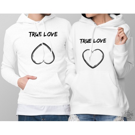 The vision of true love for a man can be a little "different" from the vision that the woman has ... Humourous white hoodie for lady and man DUOPACK