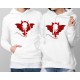 Humourous white hoodie for lady and man DUOPACK illustrated with the demonized symbols of Man and Woman