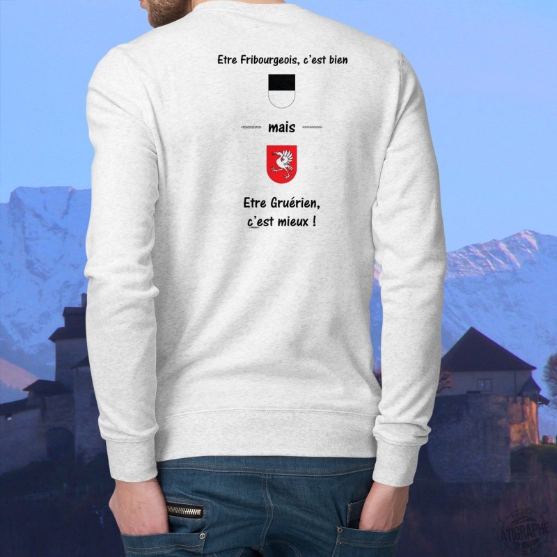 Men's fashion Sweatshirt illustrated with the quote "Gruérien, c'est mieux"