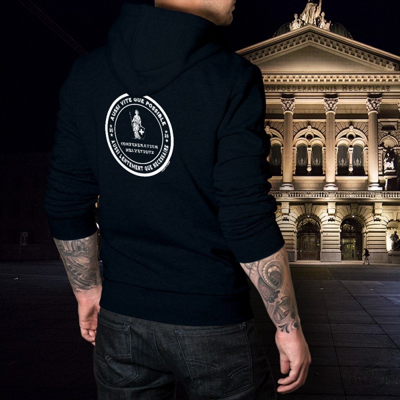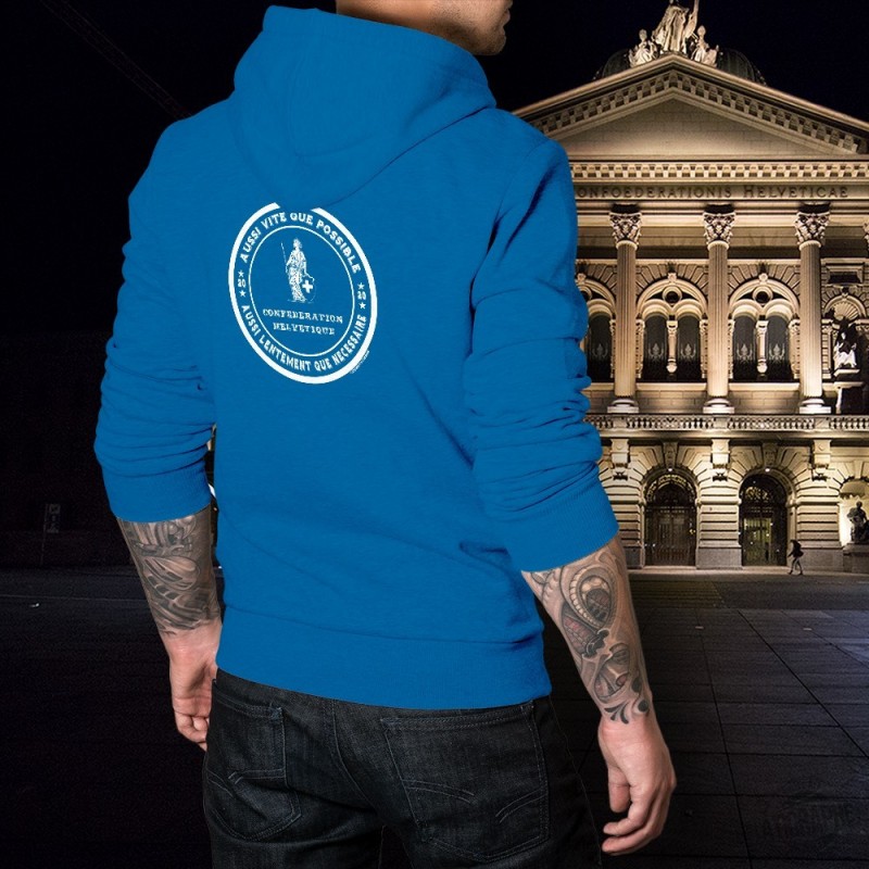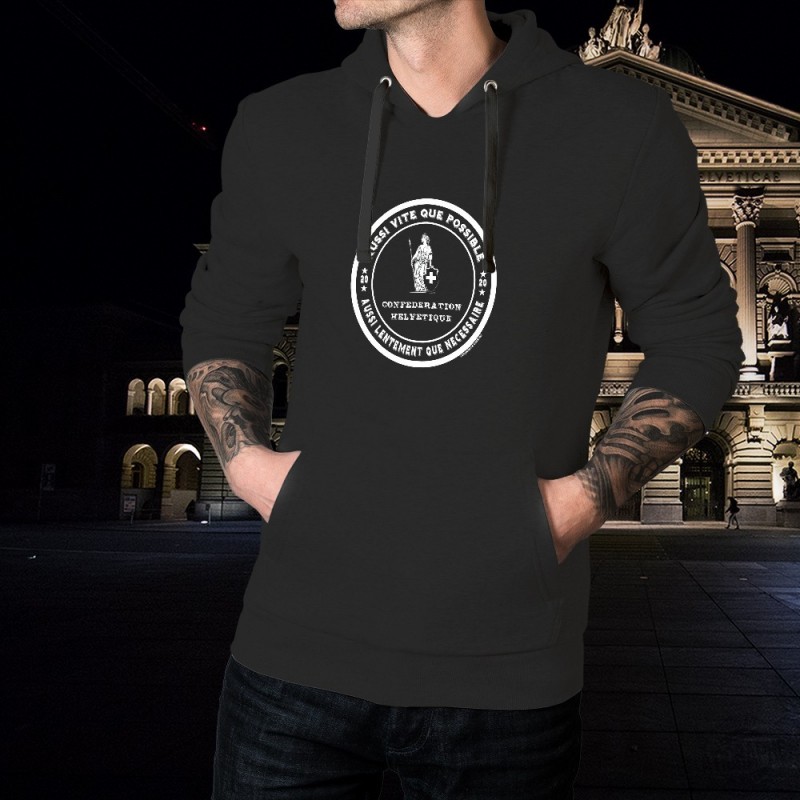 Men's Fashion T-shirt illustrated with "Aussi vite que possible ✚