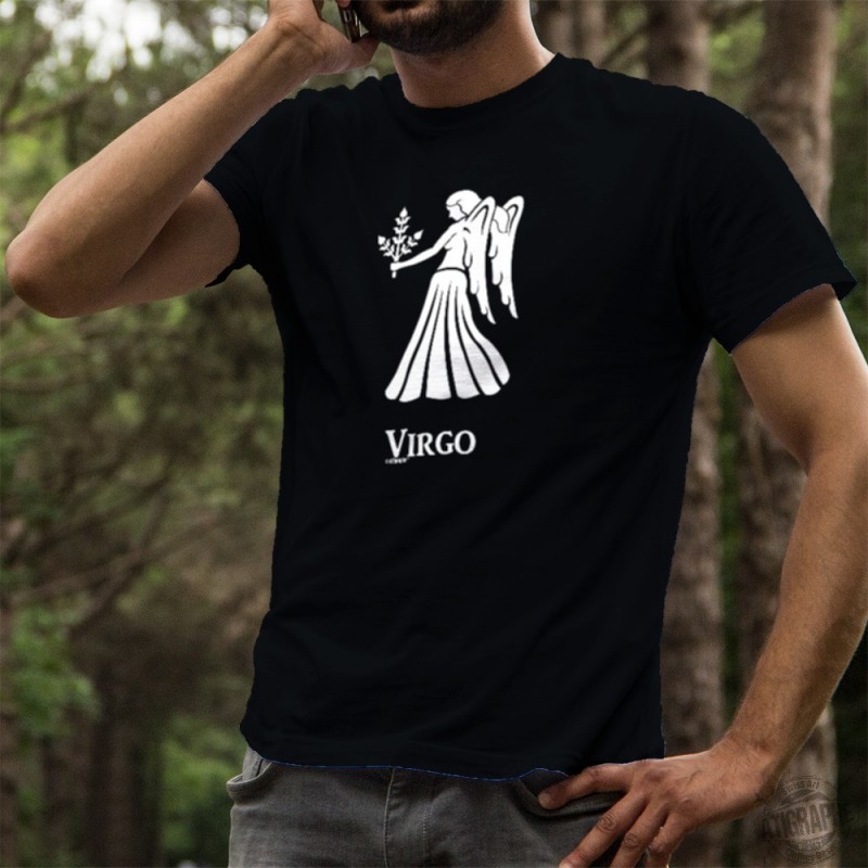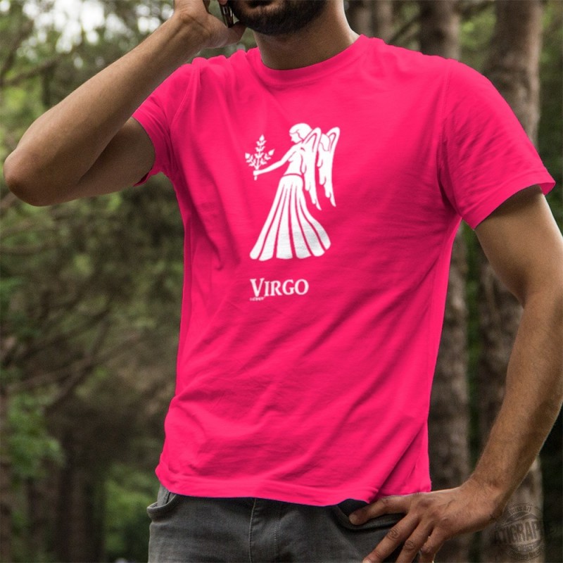 Men 100% cotton T-shirt illustrated with the zodiac sign of the Virgin for people born between August 23 and September 22