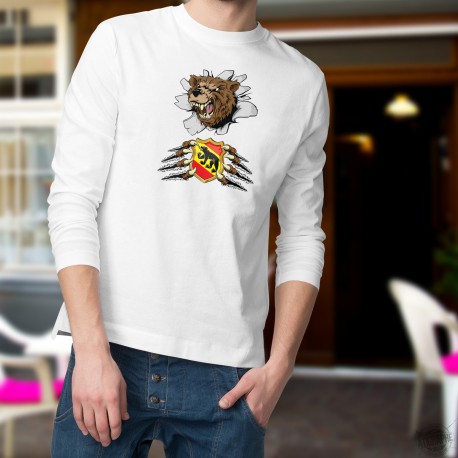 Men's fashion Sweatshirt illustrated with a bellicose bear holding the Bernese coat of arms (surrounded by gold) between his claws