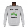 Sweatshirt for men, illustrated with the borders of Vaud in 3D and the french quote "Fier d'être Vaudois"