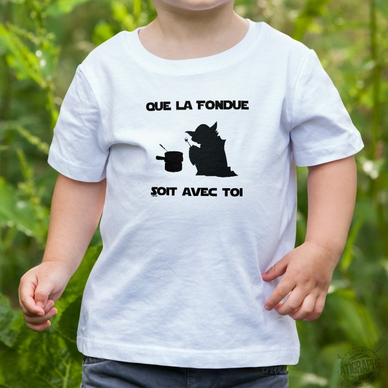 T-shirt for 2 to 14 year olds, illustrated with "Que la Fondue soit avec Toi"