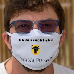 Masque double couche en tissu lavable de nombreuses fois à 60 °C, avec l'écusson du canton d'Uri et "Ich bin nicht stur ★ ich bin Urner ! ★" en allemand