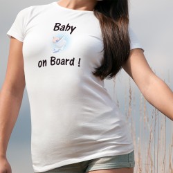 Le T-shirt parfait pour annoncer LA merveilleuse nouvelle. T-shirt à la coupe très féminine illustré d'un bébé accroché au slogan ❤ Baby on Board (bébé à bord) ❤
