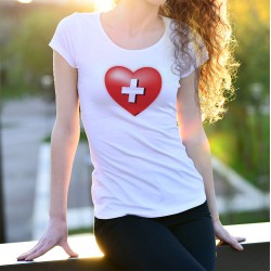 T-shirt à la coupe très féminine, illustré d'un coeur à croix suisse