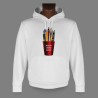 Sweat blanc à capuche, pour dame ou homme, illustré d'un gobelet rempli de crayons de dessinateur.