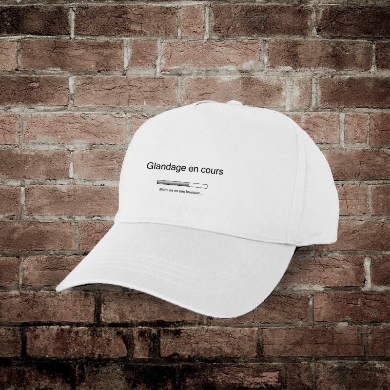 Casquette avec la citation humoristique, ★ Glandage en cours, merci de ne pas brusquer ★ et une barre de téléchargement. Pour tout ceux qui aiment glander