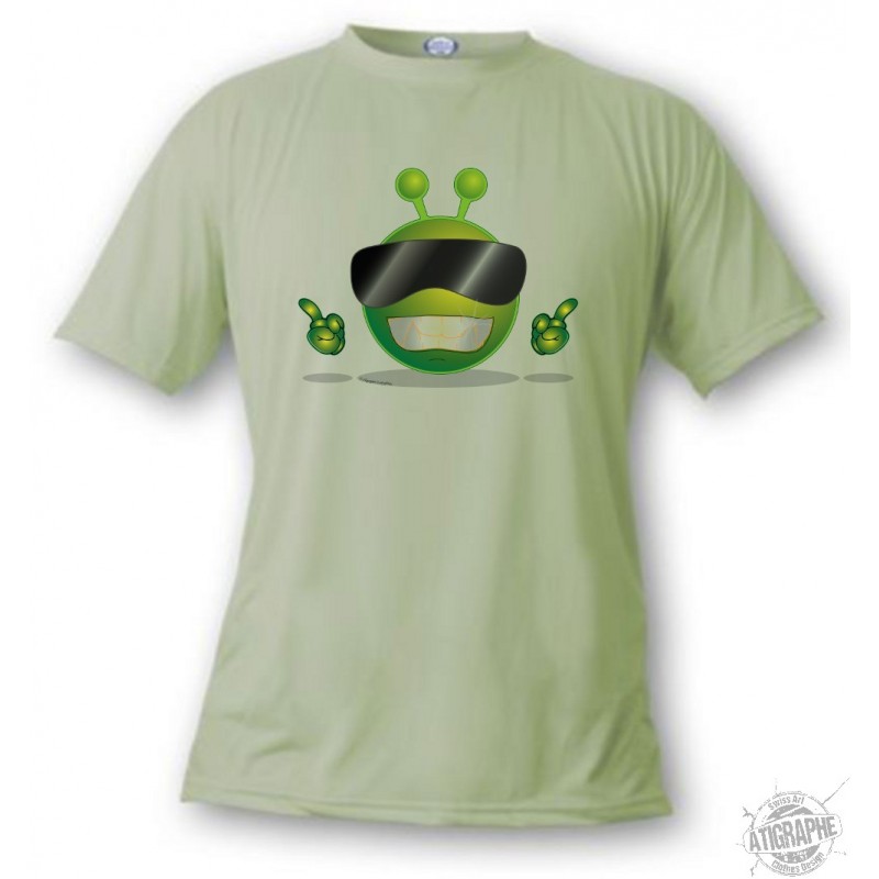 T-shirt illustré d'un smiley extra-terrestre détendu, portant des lunettes de soleil