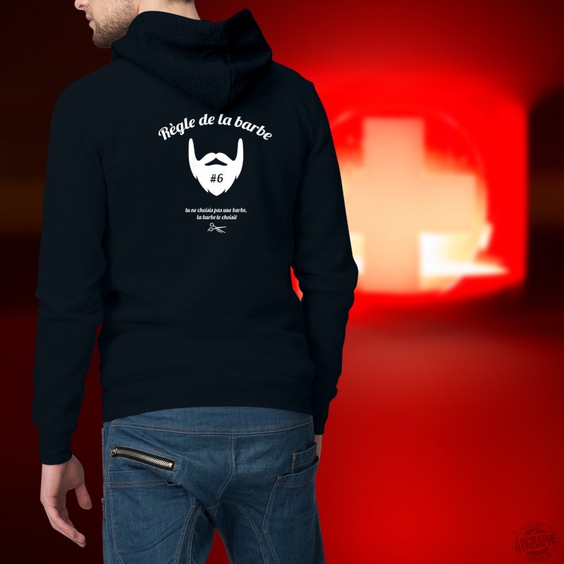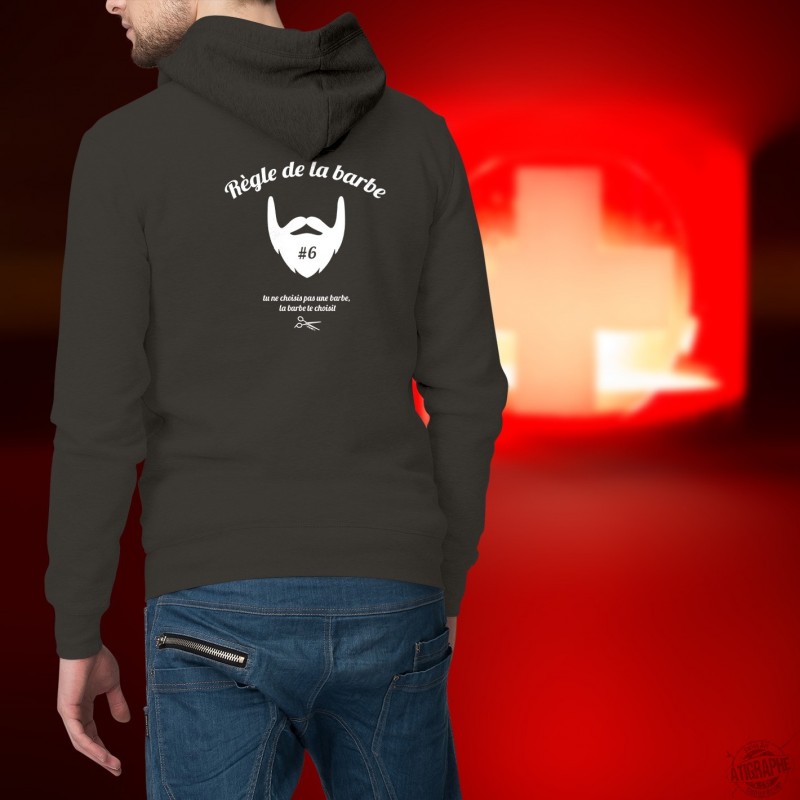 Exprimez la sagesse barbue avec style grâce à ce sweat à capuche homme. La citation de la Règle de la Barbe N°6 et le dessin élégant d'une barbe robuste font de ce vêtement bien plus qu'un simple sweat. C'est une déclaration audacieuse de l'identité virile, alliant humour et authenticité. Confortable et unique, il incarne la force tranquille de l'homme moderne.