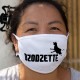 Masque de protection double couche en tissu lavable avec une vache en silhouette inspiré du logo d'une marque de sport connue et du texte ❤ Dzodzette ❤