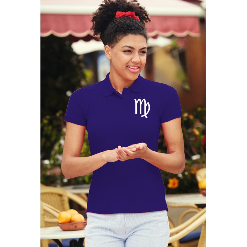 Polo 100% coton illustré du signe astrologique de la Vierge, pour dame