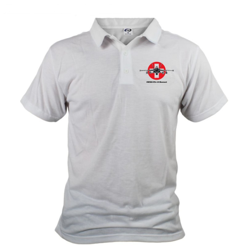 Polo illustré illustré de la silhouette d'un FA-18 Hornet, version couleur