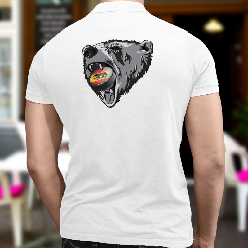 Polo homme avec l'illustration d'un ours tenant un puck de hockey sur glace bernois dans sa gueule