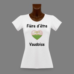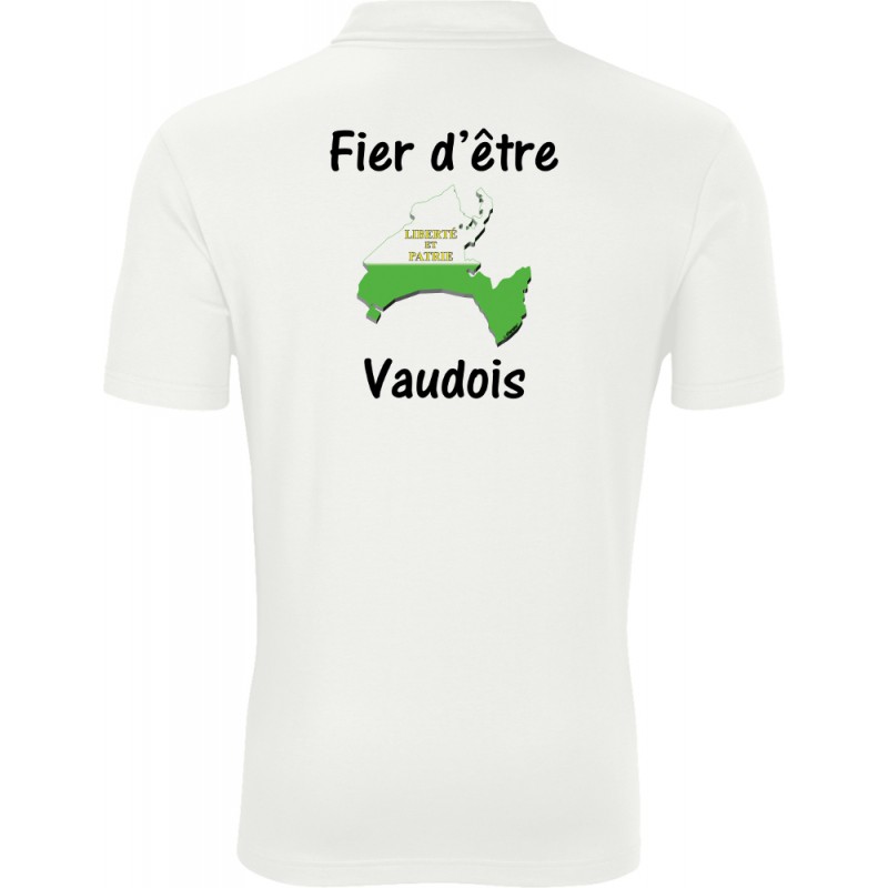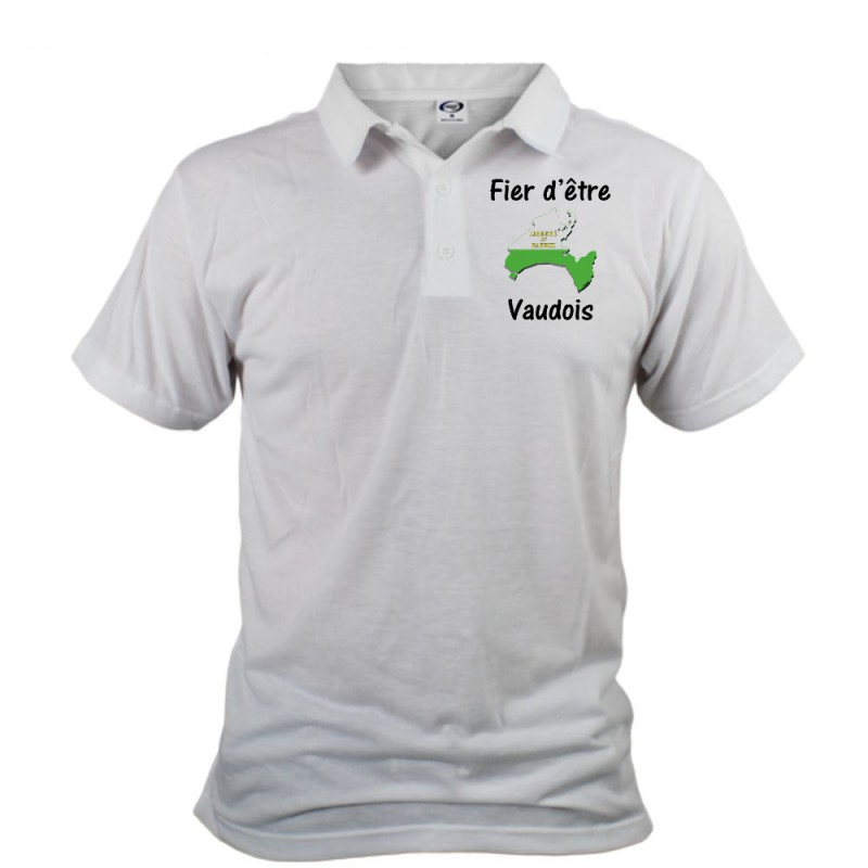 Polo homme illustré des frontières du canton de Vaud aux couleurs du drapeau Vaudois en 3D et de la citation "Fier d'être Vaudois"