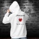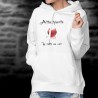 Sweat blanc à capuche humoristique pour dame, illustré de la citation humoristique, ❤ Attachiante, du matin au soir ❤ et du dessin d'un coeur un peu diabolique