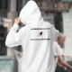 Pull blanc à capuche confortable pour dame avec du chocolat et la phrase ❤ Le chocolat est mon ennemi, mais fuir l'ennemi c'est lâche ❤