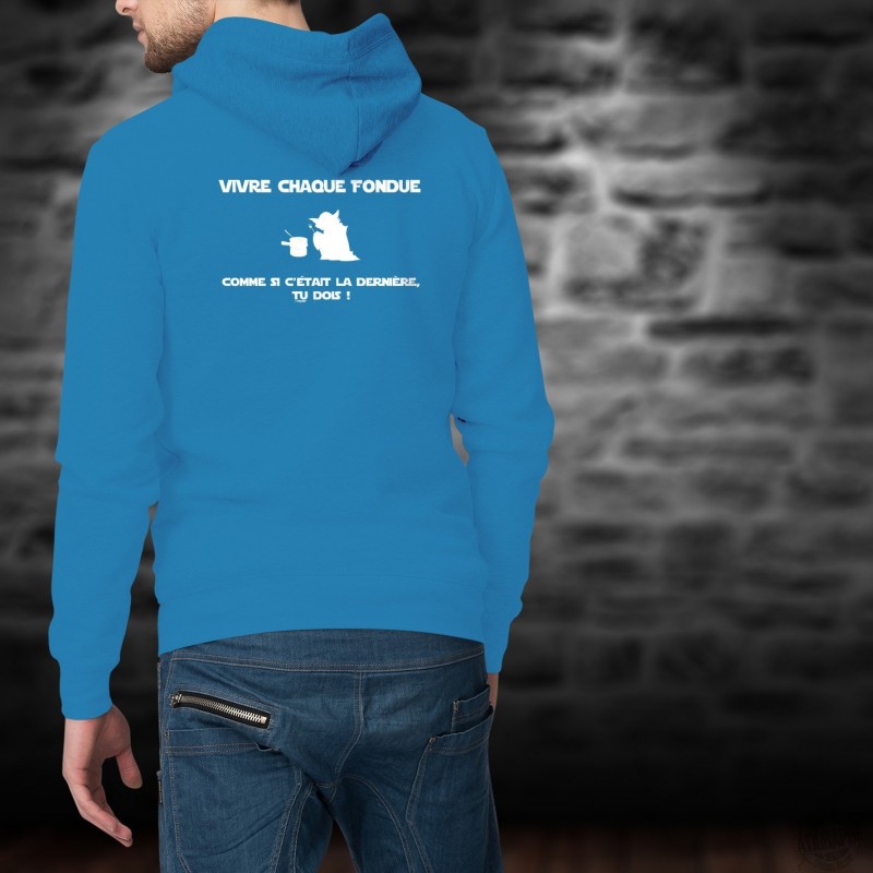 Pull à capuche, en coton, mode homme avec ★ Vivre chaque fondue comme si c'était la dernière, tu DOIS ! ★ inspiré des célèbres répliques de Yoda dans la saga Star Wars