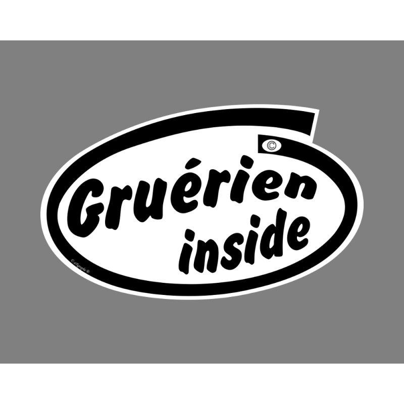 Autocollant pour votre voiture illustré du slogan ★ Gruérien Inside ★ (Gruérien à l'intérieur). Histoire de faire la différence par rapport aux fribourgeois