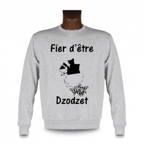 Sweat pour homme, illustré du drapeau Fribourgeois, de vaches fribourgeoises et du slogan "Fier d'être Dzodzet"