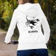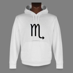 Pull-over blanc à capuche, pour dame, illustré du signe zodiacal du ♏ Scorpion ♏ pour les personnes nées entre le 23 Octobre et le 22 Novembre