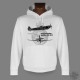 Ce sweat blanc à capuche est illustré de la silhouette d'un Supermarine Spitfire Mk XVI avec les armes de la RAF en arrière-plan.